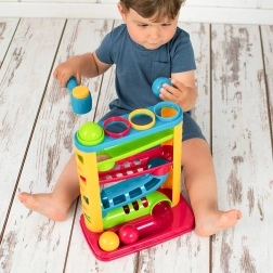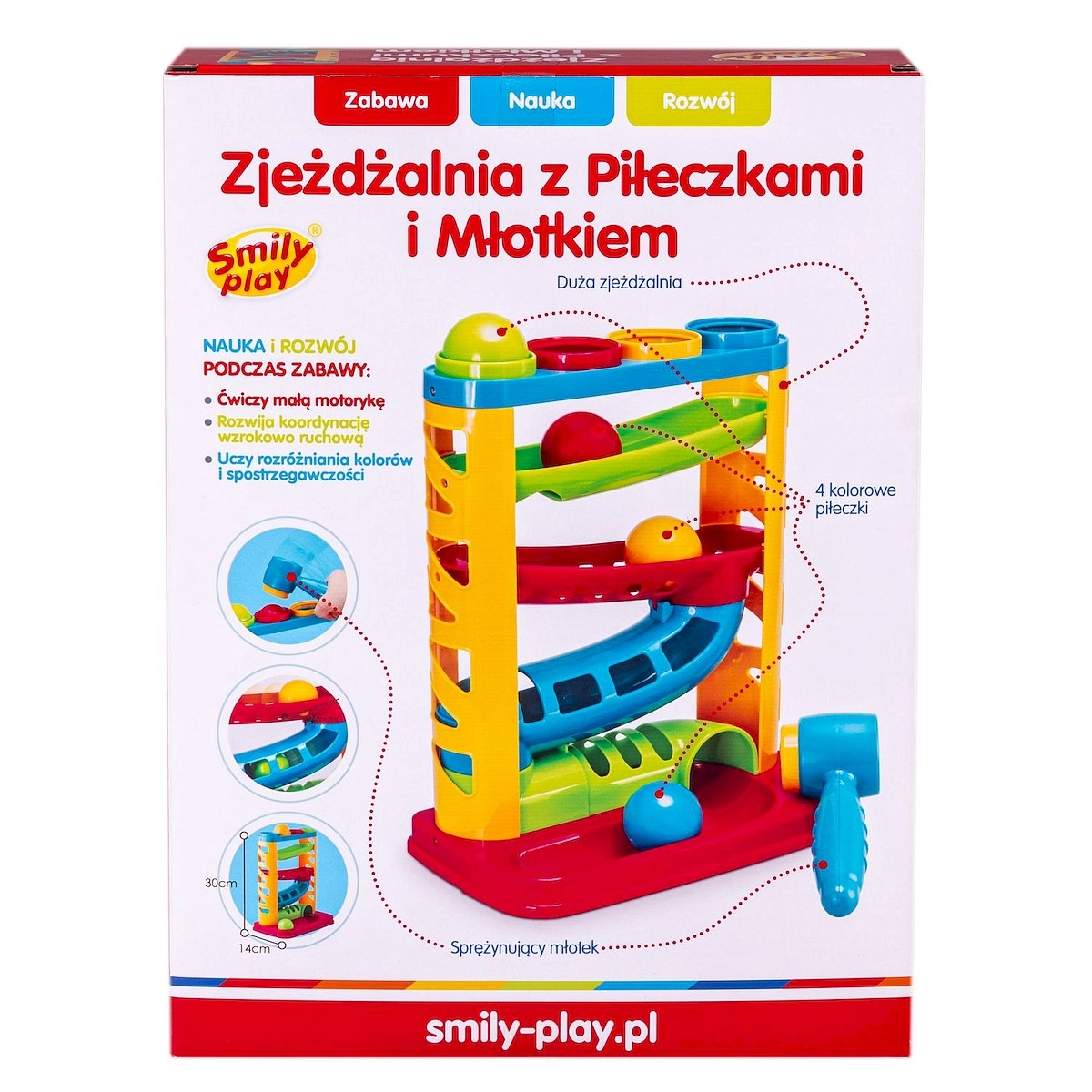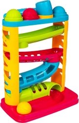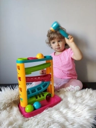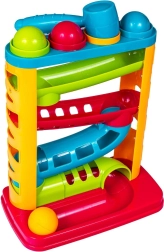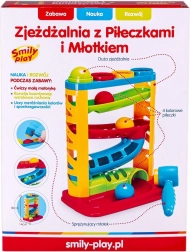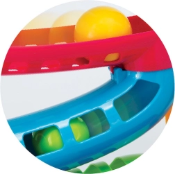 Les couleurs vives du toboggan et des balles attirent l’attention des tout-petits. Le toboggan sensoriel possède une base robuste, et les couleurs des balles correspondent aux anneaux situés dans la partie supérieure du jouet. En jouant avec le toboggan Smily Play, l’enfant développe ses compétences manuelles et observe également les relations de cause à effet dont il sera l’initiateur.