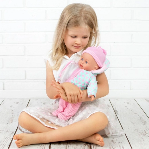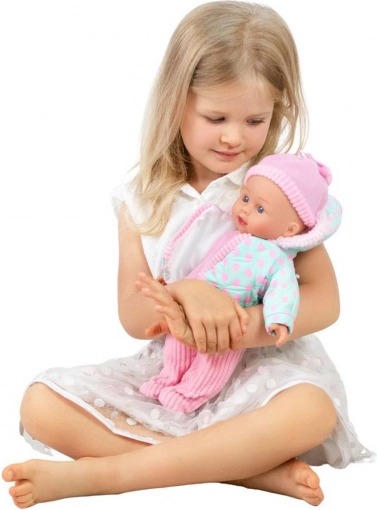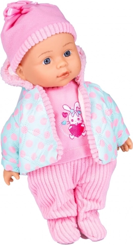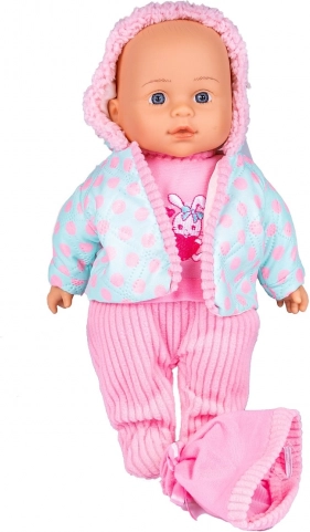 Cette poupée parlante – bébé est conçue pour des soins affectueux et le jeu quotidien. Elle possède un corps souple, un bonnet confortable, une combinaison avec pantalon rayé et une veste matelassée à capuche. Les vêtements en tissu sont agréables au toucher et faciles à mettre et à enlever, ce qui permet aux enfants d’entraîner leur motricité fine.
