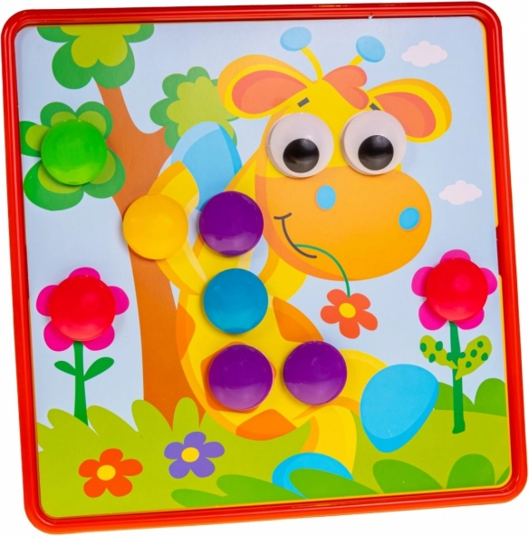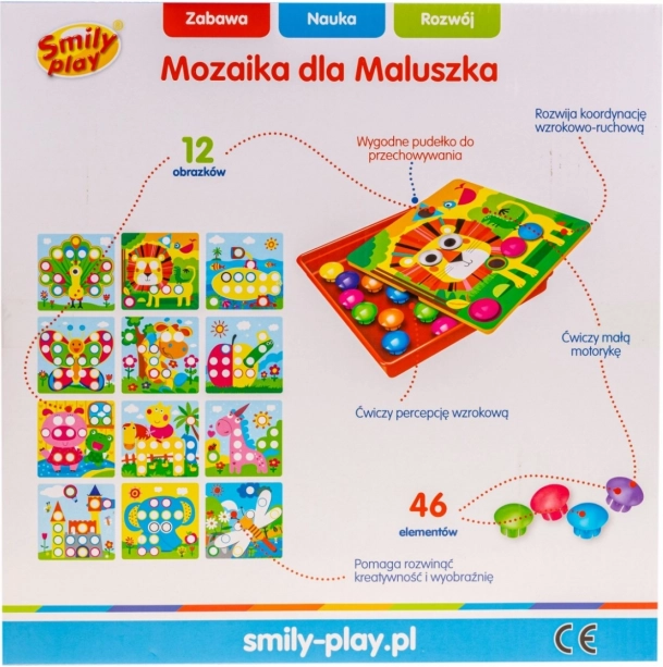Cette mosaïque colorée pour enfants repose sur un principe simple que les petits comprennent immédiatement : choisissez l’un des 12 modèles, suivez les contours colorés et insérez les chevilles dans les bons trous. Grâce aux couleurs vives et aux grandes pièces, l’assemblage est amusant et intuitif, même pour les tout‑petits.