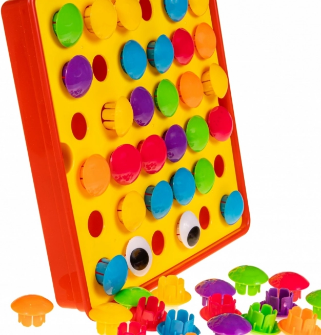 Les cartes modèles avec des contours colorés indiquent où placer chaque cheville. Les enfants apprennent les couleurs, la logique et la planification tout en jouant.