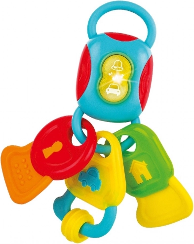 Grâce aux différentes surfaces des clés, les enfants entraînent leur prise, la coordination œil-main et découvrent de nouveaux stimuli. Le bouton fonctionnel déclenche des sons et des mélodies joyeuses qui favorisent le développement sensoriel et le jeu ludique à la maison comme en déplacement.