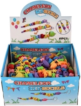 Fixez-le facilement à vos clés ou à votre sac grâce à l’anneau métallique. Disponible dans un assortiment varié de couleurs et de formes (lézard/chaméléon/serpent).