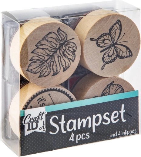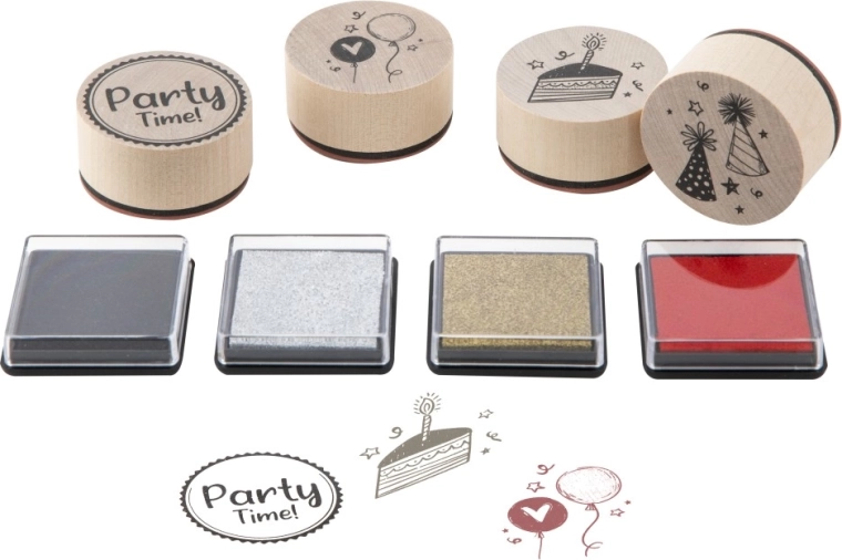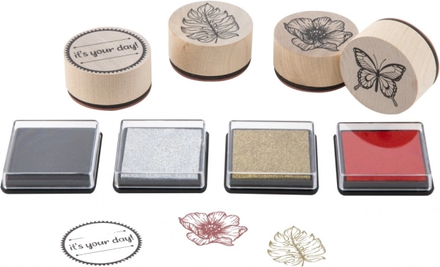 Ensemble de tampons en bois avec encreurs – fête et nature, 4 pcs