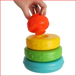 Cette tour sensorielle stable et sûre apporte aux enfants la joie d’apprendre par le jeu. Les anneaux de différentes tailles, couleurs et textures favorisent la motricité fine, la coordination œil–main et la reconnaissance des couleurs. L’un des anneaux possède une partie supérieure transparente avec des billes qui crépitent, stimulant également l’ouïe.