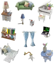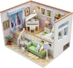 Créez votre propre intérieur miniature riche en détails réalistes – un canapé confortable avec coussins, un piano élégant, un lit avec linge, des lampes, des étagères et de délicates décorations. L’éclairage LED intégré apporte une atmosphère chaleureuse et transforme votre création en une décoration unique pour une étagère ou un bureau.