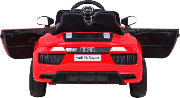 La voiture électrique Audi R8 Spyder apporte le look iconique d’une supersportive dans l’univers des enfants. Deux moteurs puissants de 35 W assurent une conduite fluide en marche avant et arrière, tandis que le démarrage progressif protège les enfants des secousses au départ. Les roues EVA souples et la suspension avant et arrière augmentent le confort sur le trottoir comme au jardin.