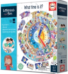 Educa Learning is Fun aide les enfants à acquérir des compétences quotidiennes associées à l'utilisation de l'horloge et les initie aux activités de la journée. Ce jeu comprend un grand puzzle circulaire avec 39 pièces et une horloge avec des aiguilles, ce qui permet d'intégrer le raisonnement logique et la motricité fine.