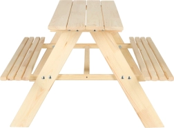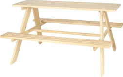Créez un coin douillet au jardin pour vos enfants. Le set se compose d’une table de pique-nique solide et de deux bancs intégrés, afin que les enfants puissent confortablement prendre une collation, créer ou jouer à des jeux de société en plein air. Le bois poncé lisse est agréable au toucher et prêt pour la finition de surface.