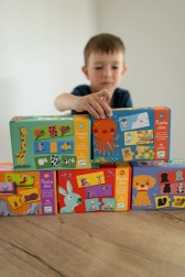 Les puzzles incluent diverses activités interactives et éducatives, comme nommer les animaux, imiter leurs mouvements et sons, ce qui favorise le développement de la motricité globale. Les enfants apprennent également à comparer les images et à trouver les adjectifs correspondants.