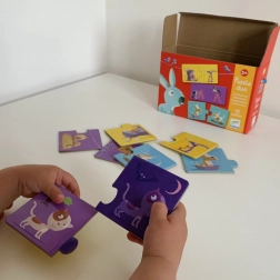 Découvrez le puzzle duo DJECO qui aide les enfants à reconnaître les opposés. Les puzzles sont fabriqués en carton rigide et conviennent aux enfants dès 2 ans. Le paquet contient 12 images et 24 pièces.