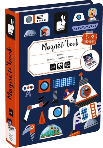 Janod Livre magnétique Espace : 52 aimants et 18 modèles pour des compositions créatives. Jouet éducatif de qualité, portable, pour enfants de 3 à 8 ans.