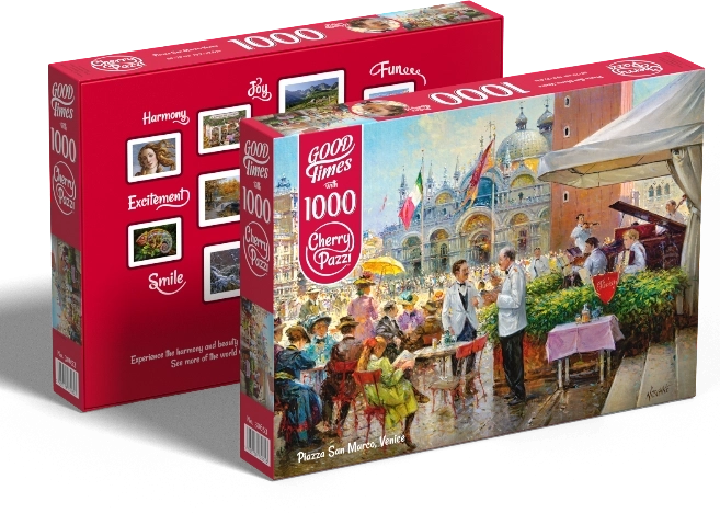 Puzzle CHERRY PAZZI Piazza San Marco, Venise. 1000 pièces, dimensions assemblé env. 70 × 50 cm. Impression de qualité et découpes précises pour un assemblage fluide.