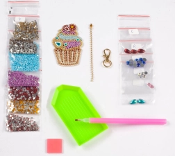 Découvrez une détente créative avec le kit de peinture diamant pour porte-clés en forme de cupcake. Il suffit de suivre quelques étapes simples – prendre les strass avec l’applicateur et les coller sur les zones indiquées. Le résultat est un porte-clés scintillant qui embellira vos clés, votre sac à dos ou votre sac à main, pour le plaisir des enfants comme des adultes.