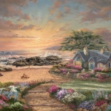 • Motif détaillé : Une belle scène avec un chalet au bord de la mer.
