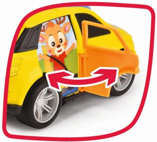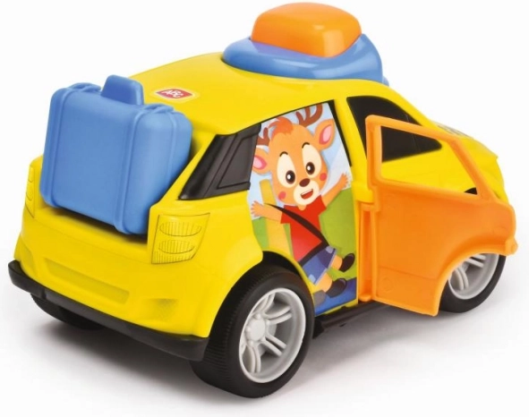 Ce taxi jaune vif avec un sourire et des roues mobiles est parfait pour des trajets rapides dans la chambre d'enfant. Il offre la fonction '100% Electric', garantissant un jeu joyeux et sûr.