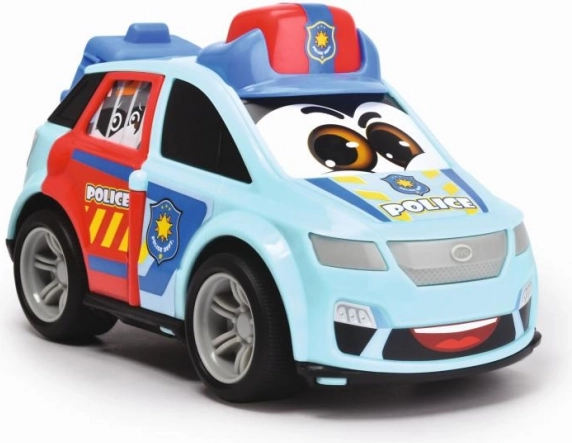 Cette voiture de police bleue avec un visage souriant et des symboles est parfaite pour maintenir l'ordre dans les rues imaginaires. Grâce à son design ludique et ses graphiques de police, chaque tour de garde sera un amusement.