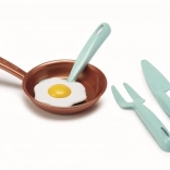 Des outils réalistes comme des cuillères, fourchettes et couteaux, associés à des aliments factices, favorisent un jeu interactif et éducatif.