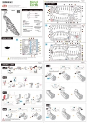 L’assemblage se fait à partir de plaques d’acier (21 × 11 cm) avec des verrous ingénieux — sans colle. Il suffit d’extraire les pièces, de les insérer dans les fentes prévues puis de plier les languettes avec une pince. L’emballage comprend 3 grandes et 1 petite plaque d’acier ainsi qu’une notice claire; de petites pinces et une pince coupante sont recommandées.