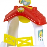 Ce set de train coloré et amusant transforme les jeux d'enfants en aventures à la ferme. Dès que le train passe, la ferme s'anime: les bras de la grue se soulèvent, le moulin commence à tourner et les animaux prennent leur rôle sonore caractéristique. En fermant la porte jaune, le caneton "nage" autour de l'étang et le manège tourne. Une excellente manière de stimuler la coordination œil-main et d'encourager l'imagination des enfants.