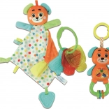 Ce coffret BABY CLEMENTONI réunit confort, sécurité et amusement dans un seul paquet. Le doudou moelleux en tissu hypoallergénique absorbe les odeurs et le parfum de maman, ce qui rassure le bébé lors des séparations. Le hochet coloré à anneaux stimule la vue et l’ouïe, tandis que l’anneau de dentition en silicone en forme de clés apporte un soulagement pendant la poussée dentaire.