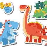 Les enfants dès 2 ans peuvent profiter d'assembler leurs premiers puzzles à thème dinosaures. Chaque puzzle contient un nombre différent de pièces - 2, 3, 4 et 5, permettant une amélioration progressive et l'acquisition de nouvelles compétences.