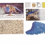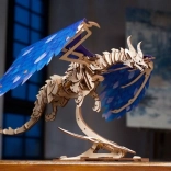 Les pièces en contreplaqué découpées au laser s’emboîtent avec précision et forment un modèle de dragon réaliste aux ailes bleues saisissantes, prêt à briller sur son socle comme en action.