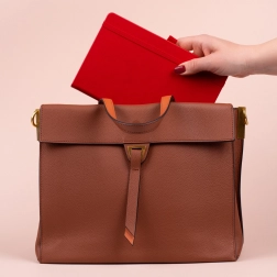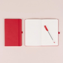 La couverture rouge résistante, à la texture plus marquée, protège vos notes et l’élastique maintient le carnet bien fermé, même en voyage.