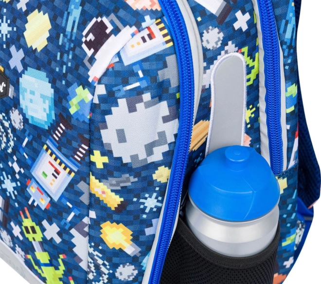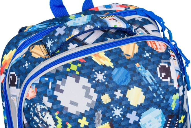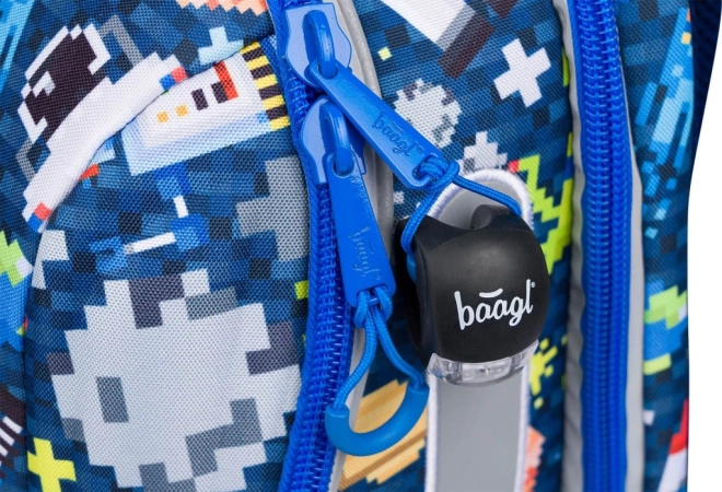 • Le cartable est équipé d’une lampe élastique qui améliore la visibilité et la sécurité de l’écolier. Grâce à sa fixation simple, la lampe peut être accrochée n’importe où.
