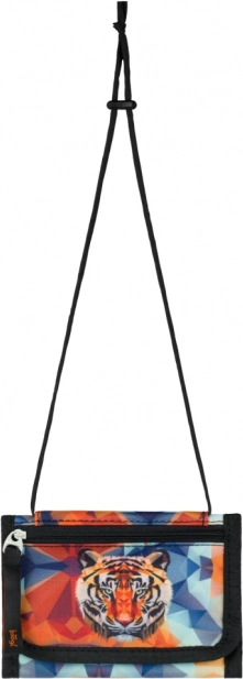 Porte-monnaie à cou stylé avec design géométrique de tigre de la marque BAAGL. Fabriqué à partir de matériau textile résistant, avec une corde pour suspendre au cou et une fermeture à velcro.