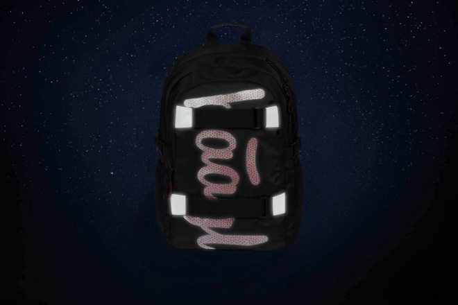 Deux sangles frontales pour fixer facilement le skate, matériau solide et imperméable et éléments réfléchissants pour des déplacements sûrs en ville.