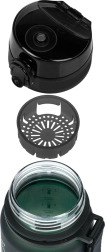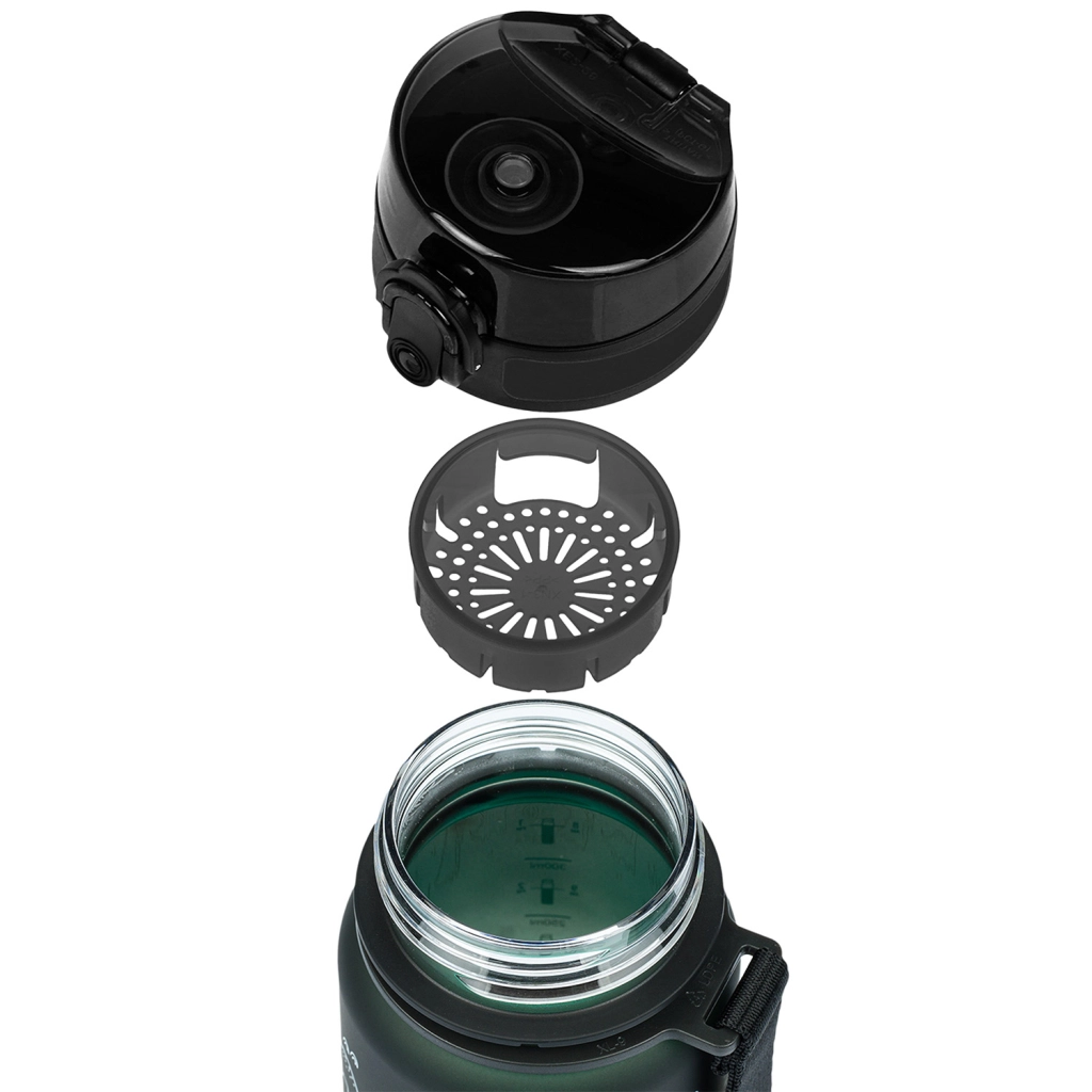 Le couvercle verrouillable ne laisse échapper aucune goutte et garantit une utilisation simple et intuitive. La bouteille comprend également un filtre, grâce auquel vous pouvez l’utiliser pour des limonades avec des fruits ou pour du thé (le matériau convient aussi aux boissons chaudes). Une dragonne est fixée à la bouteille pour un port confortable à la main.
