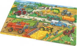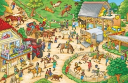 Découvrez la magie de la vie à la ferme avec ce grand livre d’images qui guide les enfants à travers tous les recoins de l’exploitation. Ils y trouveront des animaux, des machines agricoles en action, des personnes aux professions variées et des scènes amusantes. À chaque double page, ils peuvent chercher des personnages et suivre leurs histoires – apprentissage ludique, observation et concentration réunis.