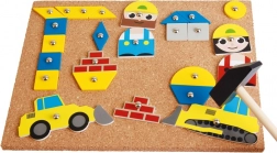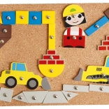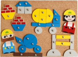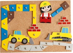 Découvrez le jeu à marteler Chantier, idéal pour les petits maîtres bâtisseurs dès 3 ans. Ce jeu encourage le développement de la motricité fine, de la concentration et de la créativité grâce à une interaction avec une planche en liège et des formes en bois.