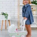 Cette poussette en bois pour poupées est un jouet idéal pour les enfants qui aiment les jeux de rôle et s'occuper de leurs poupées. Fabriquée en bois de qualité avec un beau design, elle offre un jeu sûr et amusant.