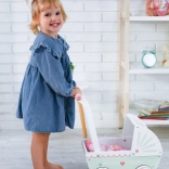 La poussette a une construction en bois robuste qui assure la stabilité et la sécurité pendant le jeu. Idéale pour les petits marcheurs débutants.