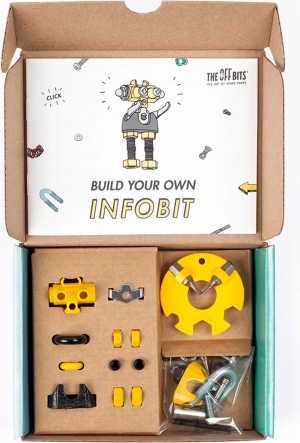 Le kit The OffBits Infobit transforme des vis et des pièces métal-plastique en un robot ludique, un poussin ou un chiot – grâce à un système d’assemblage ingénieux et aux outils fournis. La boîte contient tout le nécessaire pour créer immédiatement et stimuler votre imagination.