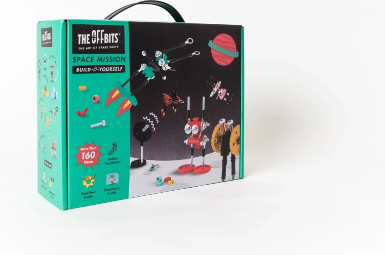 La Mission spatiale de The OffBits est un kit créatif DIY qui relie plaisir et apprentissage dans les domaines STEAM. Avec plus de 150 pièces de qualité et les outils fournis, assemblez facilement des explorateurs robotiques et des modèles spatiaux originaux – d’AstroBit à SpaceBit – puis démontez-les et reconstruisez-les selon votre imagination.