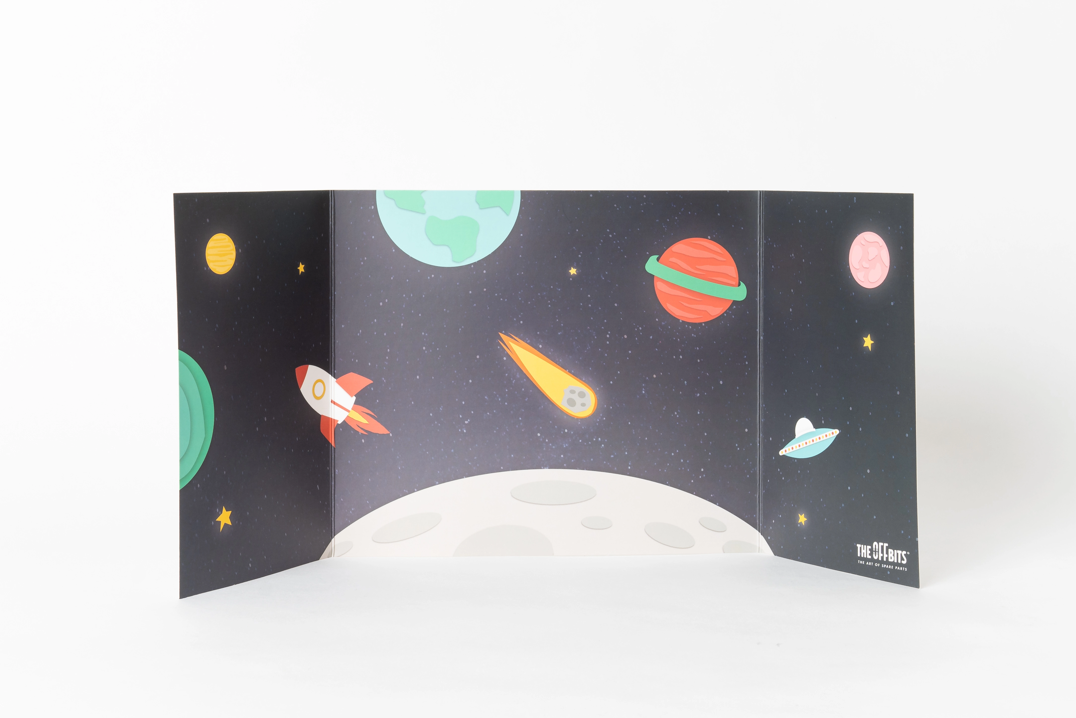 Un décor en carton pliable à thème cosmique crée un environnement saisissant pour jouer et photographier les modèles terminés. La construction stable en trois panneaux élargit l’univers de jeu.