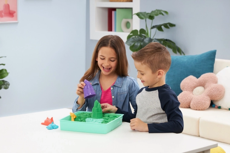 Ce kit créatif avec le sable original Kinetic Sand apporte le bac à sable directement sur la table. Le sable coule entre les doigts, est agréablement hypnotique au toucher tout en gardant parfaitement sa forme. Grâce au plateau, le jeu reste clair et ordonné, permettant aux enfants de profiter de créations sensorielles toute l’année.