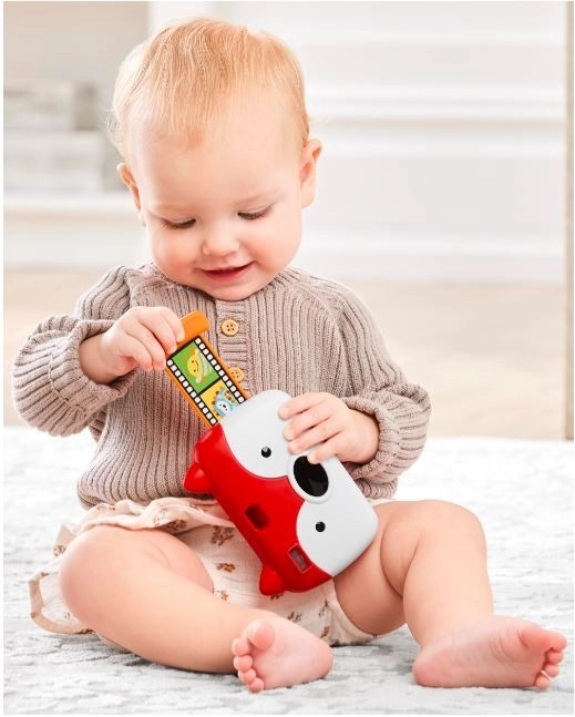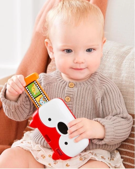 Un appareil photo pour enfants en forme de renard de la marque Skip Hop ravira les petits photographes dès 6 mois. Il propose des sons d’obturateur réalistes, un « flash » clignotant, un miroir pour enfants pour la découverte de soi et une bande « film » coulissante avec de jolies illustrations. Il tient facilement dans les petites mains et, d’une simple pression sur l’oreille du renard, déclenche lumières et sons.