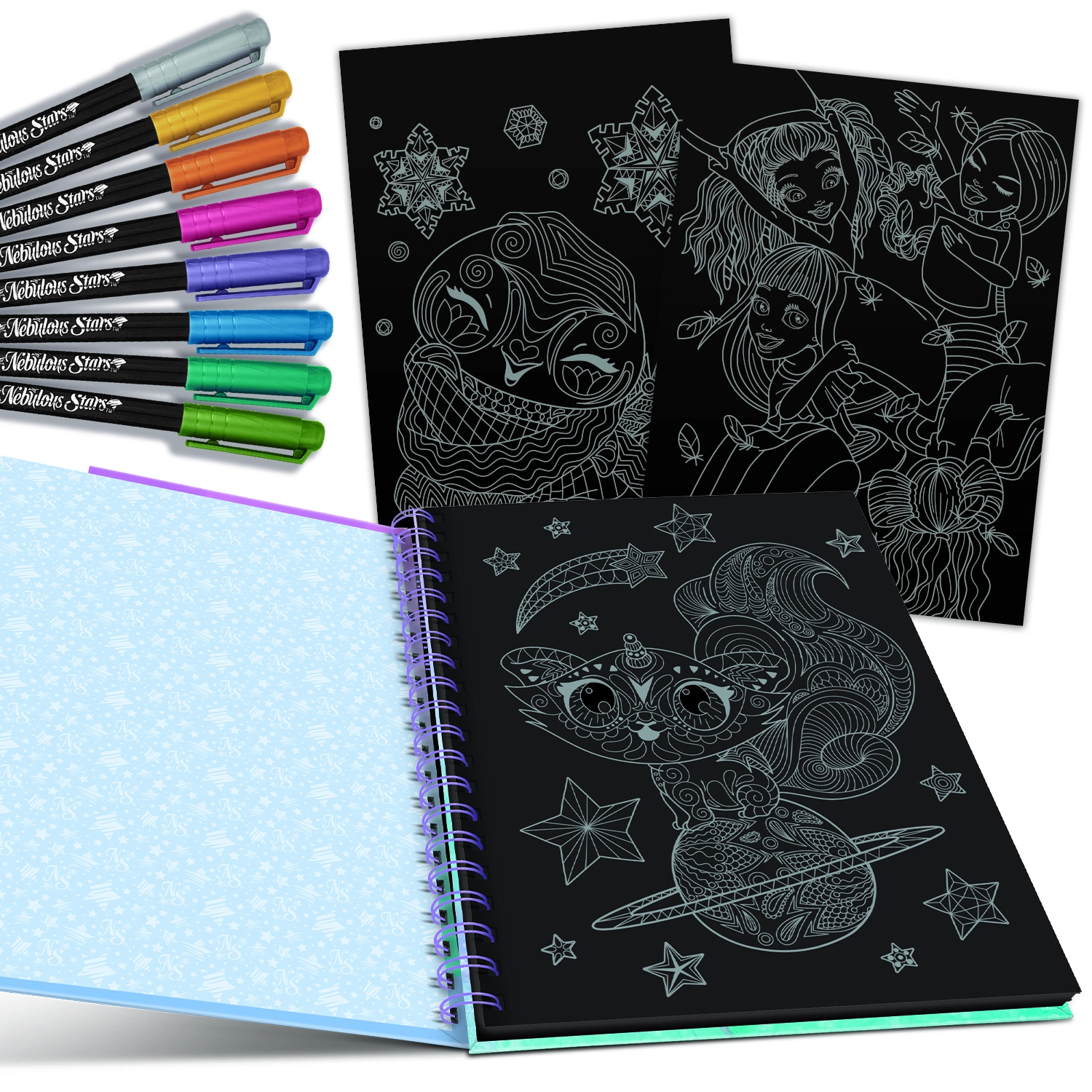 Les feuilles noires avec des contours détaillés d’animaux et de thèmes fantastiques facilitent le coloriage sans besoin d’esquisser. Idéal pour démarrer vite et se détendre.