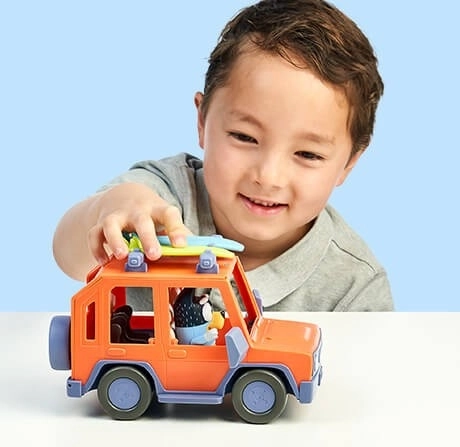 Découvrez le plaisir en famille avec la voiture familiale Bluey – un véhicule robuste avec un intérieur détaillé et de la place pour les figurines. Grâce aux éléments ouvrants et aux accessoires comme les planches de surf, les enfants recréent facilement leurs scènes préférées de la série BLUEY dans leurs propres jeux.