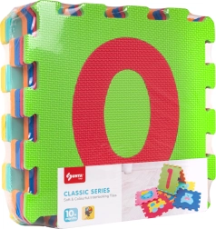 Le tapis éducatif en mousse avec chiffres allie jeu en sécurité et apprentissage. Chaque pièce d’environ 32 × 32 × 1 cm comporte des chiffres amovibles, grâce auxquels les enfants exercent leur motricité fine, la reconnaissance des formes et des couleurs ainsi que les premiers calculs. Avec 10 pièces, vous créez facilement une surface de jeu ou les reliez en structures 3D (p. ex. cubes).