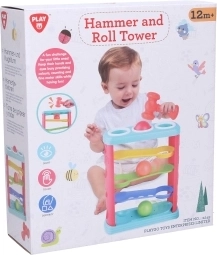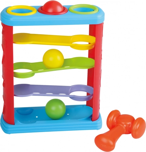 Tour avec balles et marteau : jouet amusant soutenant le développement des compétences motrices avec des dimensions de 24x10x27 cm.