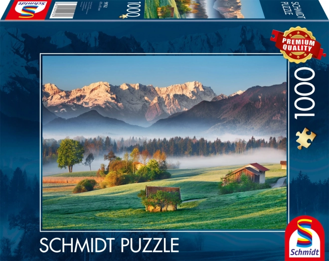 Ce set de puzzles de la marque Schmidt vous offre une vue splendide sur Garmisch-Partenkirchen et la réserve naturelle de Murnauer Moos. Chacune des 1000 pièces est fabriquée avec précision pour s’emboîter parfaitement, vous permettant de révéler chaque détail de cette superbe image au fil de l’assemblage.