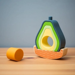 Découvrez un jeu d’équilibre créatif qui développe la motricité fine, la patience et la concentration. Les enfants peuvent démonter l’avocat, le recomposer en différentes formes et s’exercer à la stabilité en le faisant basculer sur la base en bois.