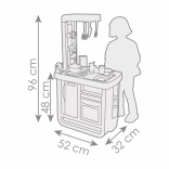 Elle est disponible dans des tons pastels doux qui s'harmonisent harmonieusement avec n'importe quel intérieur. Les parents et les enfants apprécieront certainement l'équipement riche de la cuisine, comprenant une cuisinière à 2 plaques, un four avec portes ouvrables, un réfrigérateur, un évier avec robinet et une cafetière. Le module sonore électronique souligne la réalité du jeu avec des sons de cuisson, ce qui procure encore plus de plaisir aux enfants.