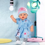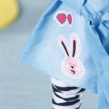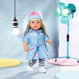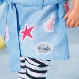Une chemise-robe stylée pour poupée BABY born au format 43 cm offrant un look denim décontracté avec des détails élégants. L’ensemble comprend une robe avec ceinture, un legging rayé, un petit bonnet rose et des baskets blanches. Idéal pour des jeux créatifs et l’habillage, avec un accent sur la qualité de fabrication, l’habillage facile et un riche assortiment d’accessoires.