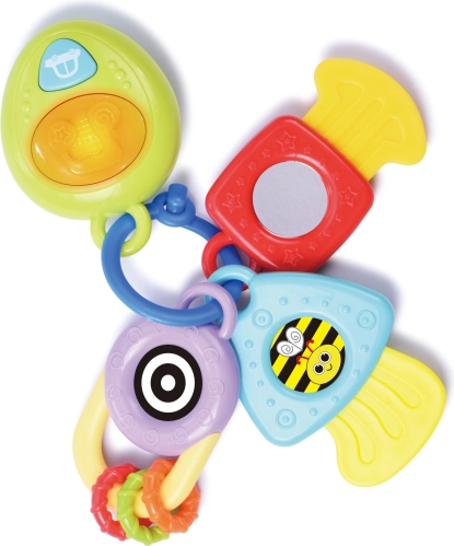 Anneau de dentition de formes et couleurs variées. En appuyant sur les boutons des clés, chaque clé émet différents effets sonores ou lumineux.