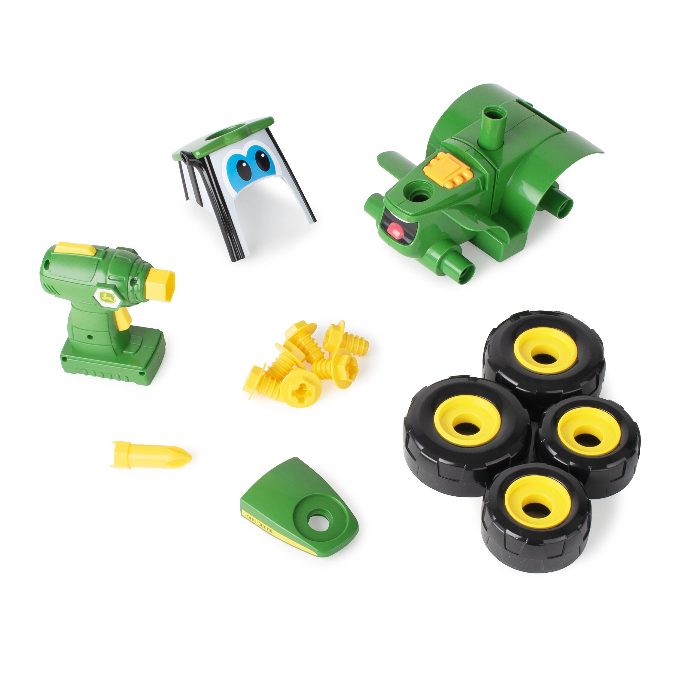 Le set comprend un tournevis pour enfants avec trois embouts, permettant de démonter puis de remonter le tracteur. Les roues libres assurent une conduite fluide lors du jeu quotidien, pour profiter à la fois de l’assemblage et des courses dans la chambre. Les piles 2× AA sont incluses, la fête peut donc commencer tout de suite.